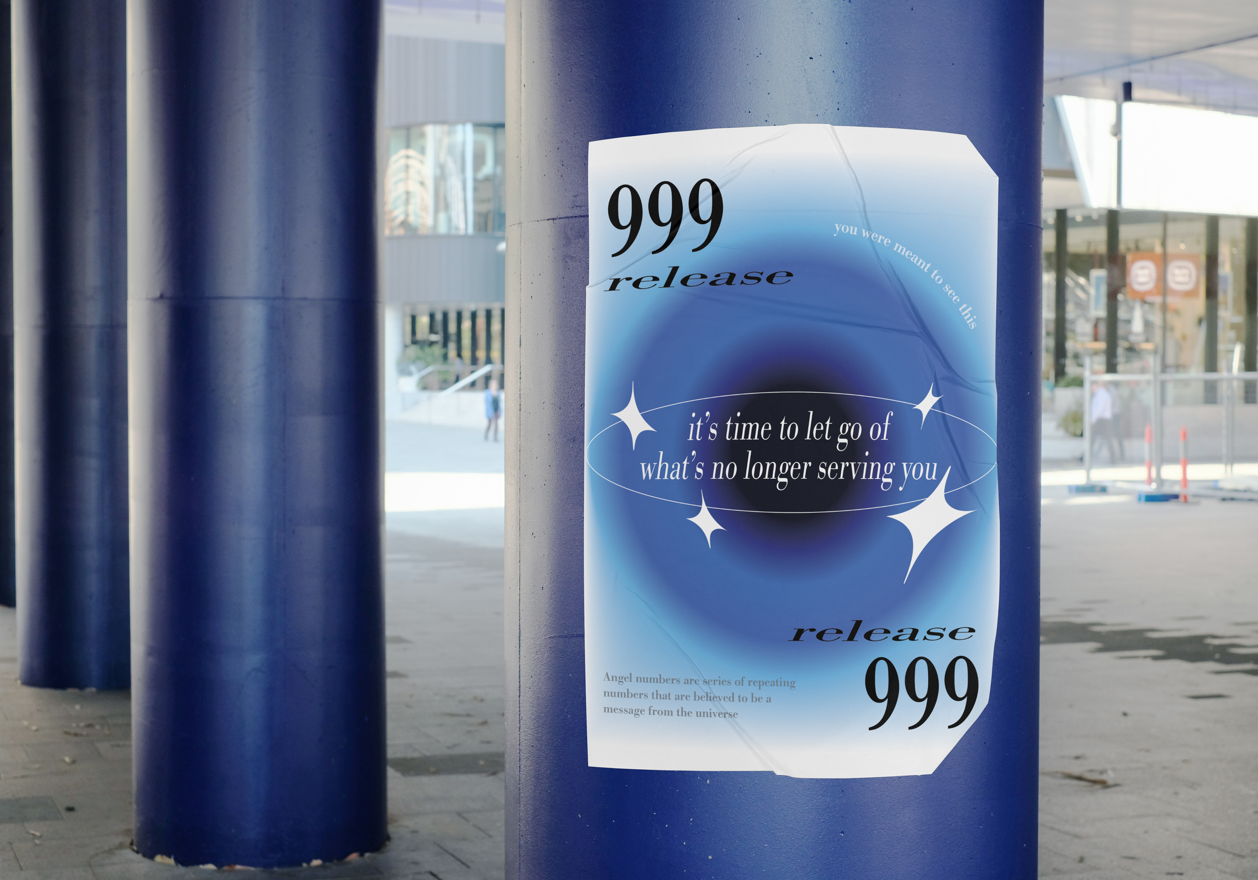 I wanted to create a poster that would convey a positive message. I went with angel numbers, which are a set of numbers that have a ‘message’. When you see the number, it is a sign.